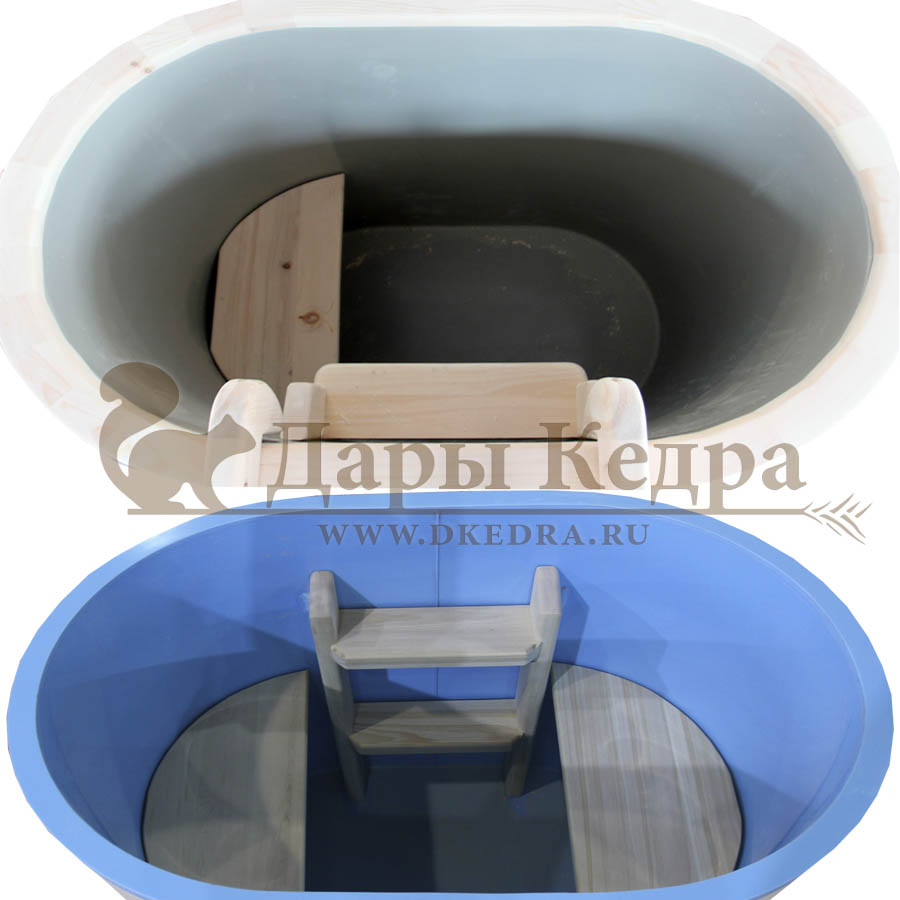 Обращаем Ваше внимание, деревянный обод из кедра по краю канта купели не входит в стандартную комплектацию, приобретается за дополнительную плату. Пластиковая вставка в стандарте идёт синяя. Вы можете заказать серую по согласованию с менеджером.
