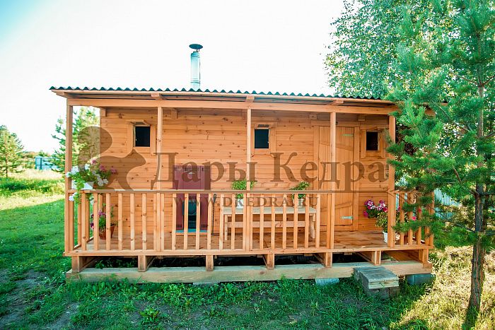 Банная конструкция из кедра должна быть длиной 5-6 метров, чтобы внутри могла расположиться просторная парная, небольшая помывочная и уютная комната с лавками или лежаками по согласованию с покупателем. Ниже представлены уже разработанные технологами компании "Дары Кедра" готовые проекты, которые включают в себя всё необходимое для комфортного времяпрепровождения на природе.